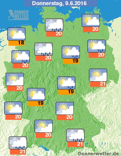 Am Donnerstag zeigt sich vor allem in den Küstenregionen häufig die Sonne, hier bleibt es dazu weitgehend trocken. Im großen Rest der Republik ist es dagegen größtenteils aufgelockert oder stark bewölkt und es können sich wiederholt Schauer und einzelne Gewitter bilden. Im Westen und im Südwesten ist es jedoch auch lange Zeit heiter oder soagr sonnig, hier bleibt es mehrheitlich trocken. Die Temperatur steigt auf 18 Grad in Emden und bis 21 Grad in Freiburg.