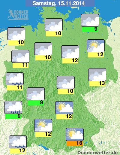 Am Samstag dominieren wieder einmal die Wolken das Tagesgeschehen, dazu kann sich nur im Süden und Südosten und hier und da im Osten die Sonne mal längere Zeit zeigen, sonst bleibt die Wolkendecke häufig geschlossen und von Südwesten bis nach Westdeutschland und gebietsweise auch im Nordseeumfeld kann zeitweilig Regen fallen, sonst bleibt es aber weitgehend trocken. Die Temperatur steigt auf 9 Grad an der Müritz und etwa 16 Grad in München.