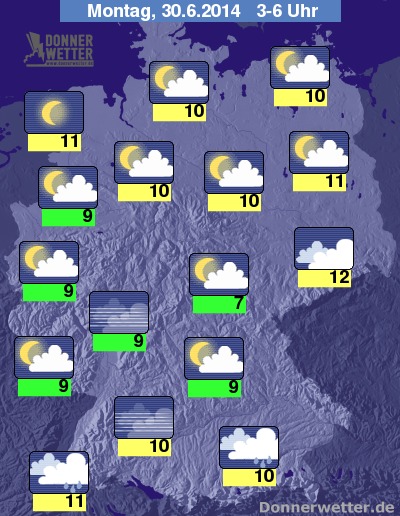 In der kommenden Nacht bilden sich zu Beginn hier und da noch weitere Schauer, ab der zweiten Nachthälfte klingen die Schauer aber weitgehend ab, so dass es im Folgenden weitgehend trocken bleiben dürfte. Besonders im Westen und Nordwesten zeigt sich teils sternenklarer Himmel. Die Temperatur sinkt bis zum Morgen auf 12 Grad in Dresden und etwa 7 Grad an der Fränkischen Alb.