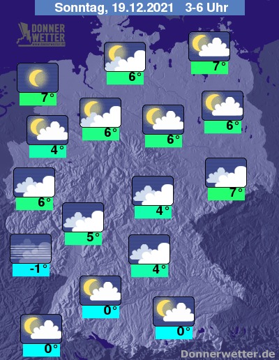In der bevorstehenden Nacht ist der Himmel oft stark bewölkt, vielerorts lockert es aber auch auf, dazu bleibt es trocken. Es bildet sich stellenweise Nebel. Die Temperatur sinkt auf 7 Grad in Stralsund und bis -1 Grad in Saarbrücken.