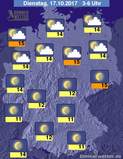 In der kommenden Nacht ziehen über den Norden lockere Wolken hinweg. Von der breiten Landesmitte bis nach Süden hin zeigt sich der Himmel sternenklar, dazu bleibt es trocken. Die Temperatur sinkt auf 15 Grad in Magdeburg und bis 11 Grad in Augsburg.