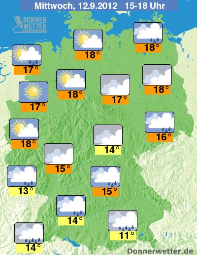 Zwischen dem Hoch 'Ennio' auf dem Atlantik und Tief 'Grainne' über Skandinavien kommt zur Wochenmitte kalte Luft aus dem Norden nach Deutschland. Vor allem im Süden und Osten ist es noch grau und nass, die Temperaturen erreichen oft nur 15 Grad.
