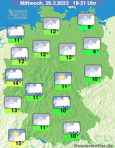 Heute Abend zieht von Südwesten her neuer Regen durch, der etwa die Südwesthälfte des Landes überquert, hinter dem Regenband klingt der Regen wieder ab. Über der Nordosthälfte der Republik ist es ebenfalls meist dicht bewölkt, jedoch weitgehend trocken. Die Temperatur liegt bei 8 Grad in Stralsund und bis 15 Grad in Freiburg.