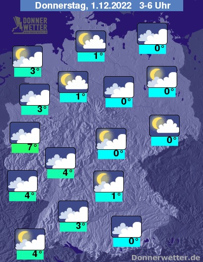 Am Donnerstag ist es meist stark bewölkt oder bedeckt, hier und da zeigen sich aber auch Auflockerungen oder es ist sogar heiter. Westlich des Rheins ist stellenweise etwas Regen möglich, sonst bleibt es aber weitgehend trocken. die Temperatur steigt auf 1 Grad in Jena und bis 8 Grad in Köln.