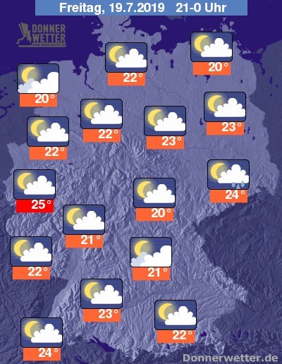 Die Temperaturen liegen am frühen Abend noch zwischen 22 Grad an der Emsmündung und 28 Grad im Süden.