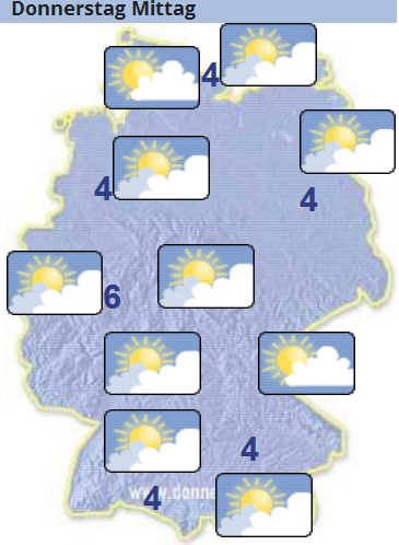 Nachmittags werden heute und morgen um die 2-5 Grad C gemessen. Zumeist setzt sich die Sonne durch.