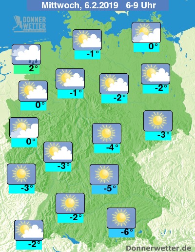 Die Temperaturen erreichen am frühen Morgen Werte um -6 Grad C am Alpenrand und um 2 Grad C in Emden.