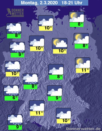 Die Temperaturen sinken bis zum späteren Abend auf Werte um 8 Grad an den Alpen und 4 Grad an der Ostseeküste.
