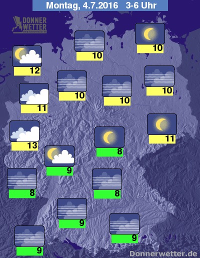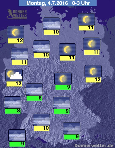 Tiefstwerte um 8 Grad C in der Nacht auf Montag
