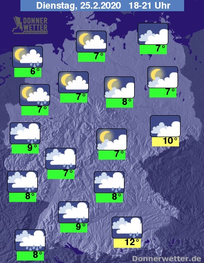 Vor Dämmerungsbeginn bewegen sich die Temperaturen zwischen 6 Grad an der Emsmündung und 12 Grad rund um München.