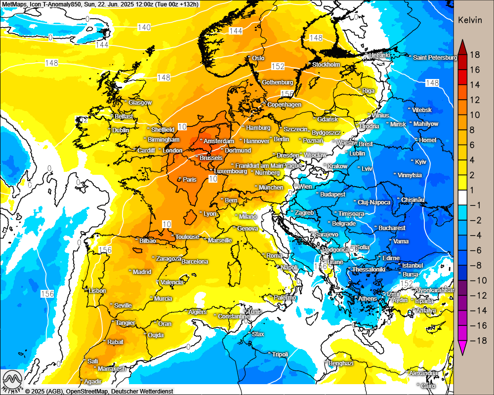 Ob sich dann schwül-heiße Luft von Westen her durchsetzen kann oder ob wir in trockener und somit deutlich angenehmerer Luft verbleiben, gilt es aktuell noch abzuwarten.
