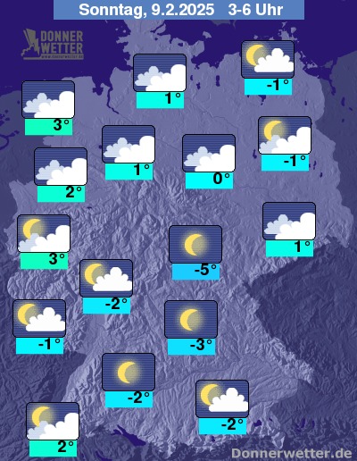 Die Temperaturen gehen in den frühen Morgenstunden zurück auf Werte um 3 bis -5 Grad.