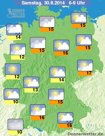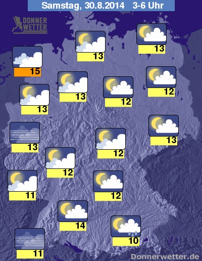 Der frühe Samstagmorgen bleibt in weiten Teilen Deutschlands locker oder aufgelockert bewölkt und meist trocken, einzelne Schauer fallen meist nur am Alpenrand. Die Temperaturen liegen bei Werten um 15 bis 10 Grad.
