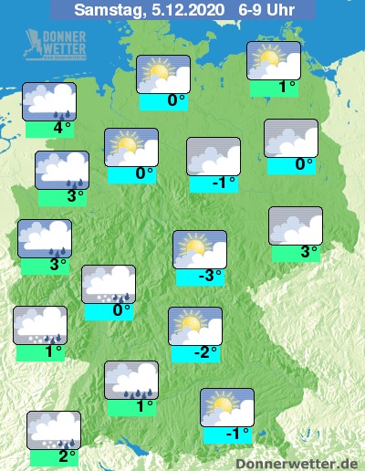 Der Samstag startet in dr Westhälfte sowie zwischen Elbe und Oder mit dichten Wolken, entlang des Rheins sind zeitweise auch Regen-, in höheren Lagen auch Schneeregen- oder Schneeschauer möglich. In den übrigen Landesteilen bleibt es bei meist aufgelockerter Bewölkung häufig trocken.