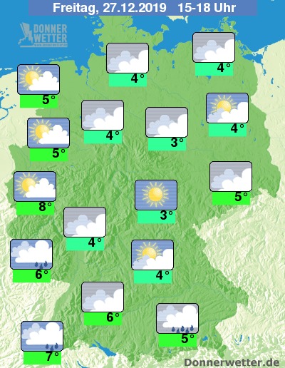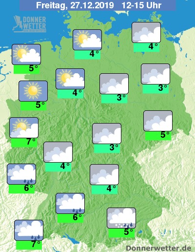 Am frühen Nachmittag fällt im Süden und Südwesten aus kompakten Schichtwolken noch gelegentlich Regen. In den Alpen sinkt die Schneefallgrenze. Im übrigen Land gibt es von der Kölner Bucht bis nach Schleswig Holstein größere Aufheiterungen, während nach Osten hin die Wolken meistens dicht bleiben. Im Bereich des Erzgebirges kann es zu örtlichen Niederschlägen kommten, wobei sich bis in tiefere Lagen Schneeflocken unter die Tropfen mischen können.