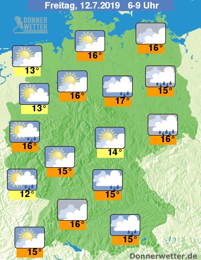 Der Freitag startet im Süden und Osten häufig mit einer geschlossenen Wolkendecke, in der Westhälfte überwiegt ein Mix aus Sonne und wechselnder Bewölkung. Mit regionalen Schauern muss im Osten und Südosten sowie Teilen NRWs und Rheinland-Pfalz gerechnet werden.