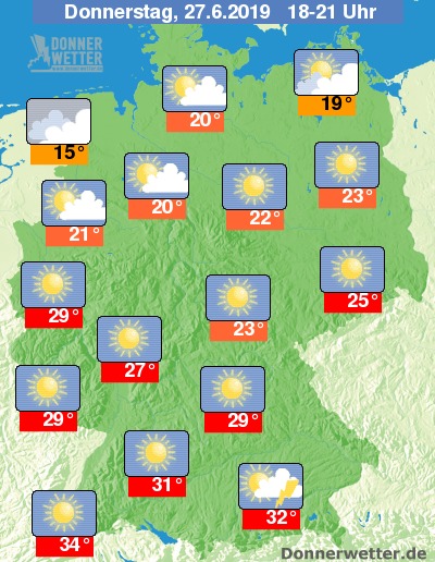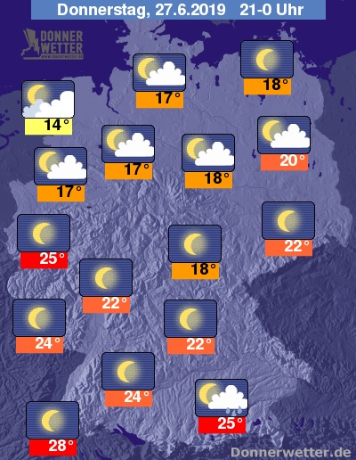 Die Temperaturen liegen am frühen Abend in der Nordhälfte meist bei 20 bis 25 Grad, kühler bleibt es an der Emsmündung und an den Küsten.