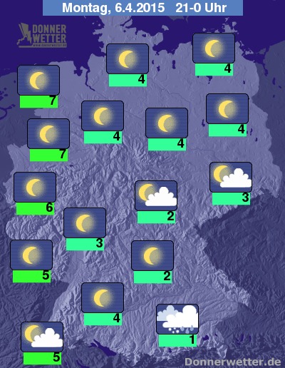 Heute Abend ziehen sich letzte Schnee- und Regenfälle an die Alpen zurück, dahinter bleibt es bei auflockernder Bewölkung weitgehend trocken. Im übrigen Bundesgebiet zeigt sich der Himmel bereits weitgehend sternenklar, dabei bleibt es natürlich trocken. Die Abendtemperatur liegt bei 7 Grad im Emsland und etwa 1 Grad im Chiemgau.