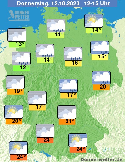 Heute Nachmittag zieht nördlich des Mains meist dichte Bewölkung durch und dazu fällt auch gebietsweise Regen. Im Süden ist es teils aufgelockert, teils stark bewölkt und dazu weitgehend trocken. Die Temperatur liegt bei nasskalten 12 Grad am Niederrhein und bis 24 Grad in Schwaben.