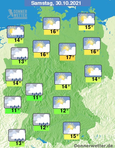 Am Samstag ist es in den östlichen Landesteilen zunächst noch verbreitet heiter bis sonnig, nach Westen hin ziehen dagegen zunehmend dichte Wolken heran, dabei bleibt es hier auch anfangs noch trocken, jedoch setzt im Tagesverlauf in den westlichen Landesteilen zeitweise Regen ein. Die Temperatur steigt auf 11 Grad im Saargau und bis 17 Grad in der Altmark.