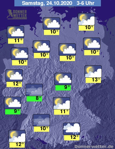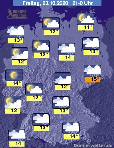 Bis Mitternacht verlagert sich der Regenschwerpunkt in die östlichen und südlichen Bundesländern. In den anderen Gebieten klart der Himmel zum Teil auf. Lediglich im Nordseeumfeld sind einzelne schwächere Schauer möglich.