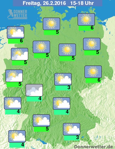 Heute Nachmittag scheint vor allem im Norden und Osten verbreitet die Sonne und es ziehen hier höchstens lockere Wolkenfelder durch. Über der Südwesthälfte der Republik wechseln sich Sonne und Wolken einander ab und gebietsweise hält sich auch mal starke Bewölkung, jedoch bleibt es auch hier trocken. Die Temperatur steigt auf 3 Grad im Vogtland und bis 6 Grad entlang der Ems.