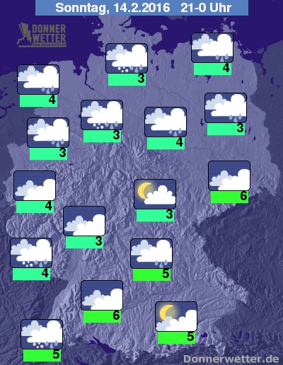 Der Sonntagabend bietet wettertechnisch nicht viel neues. Weiterhin dominieren in weiten Teilen des Landes dichte Wolken, vielfach fallen Regen-, entlang der Weser sowie im äußersten Südwesten auch Schneeschauer. Phasenweise trocken bleibt es in einem Streifen von der Eifel bis ins Erzgebirge.
