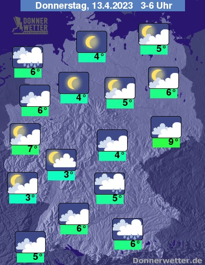 In der Nacht zum Donnerstag fällt im Süden, anfangs auch im Osten unter dichten Wolken noch häufig Regen. Im übrigen Land lockert die Bewölkung auf und zum Teil wird es auch sternenklar, dazu bleibt es vorerst trocken. Erst gegen Morgen zieht im Nordwesten neuer Regen auf. Die Temperatur sinkt auf 9 Grad in Dresden und 3 Grad in Saarbrücken.