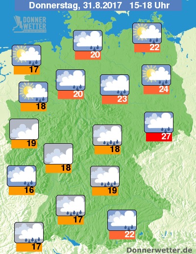 Am Nachmittag und frühen Abend bleibt der Himmel weiterhin überwiegend vollständig bedeckt. Entlang der Oder und der Ems scheint ab und zu die Sonne. Im Norden sind immer wieder Schauer möglich und zwischen Thüringen und dem Schwarzwald regnet es häufig. Im Westen ist es ebenfalls ungemütlich, aber es bleibt überwiegend trocken.