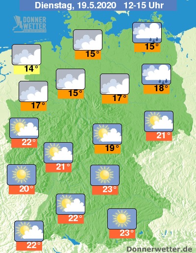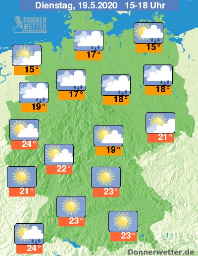 Die Temperaturen bewegen sich im Norden meist nur zwischen 14 und 19 Grad, im Süden und Westen werden angenehmere 20 bis 24 Grad erreicht.