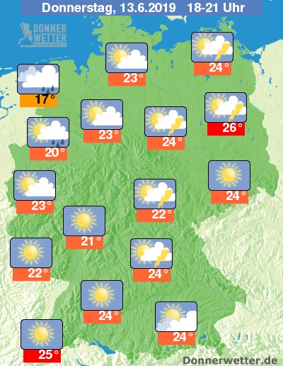 Am Abend können sich von Nordbayern, über Thüringen und Brandenburg bis zur Ostsee noch örtliche Schauer und Gewitter entladen. Auch an der Ems kann es nass werden. Sonst spendet die allmählich untergehende Sonne noch reichlich Licht und wohltuende Wärme.