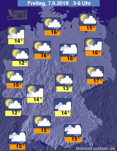 Während der zweiten Nachthälfte muss regional noch mit einigen Schauern gerechnet werden. Von Westen kommen aber immer häufiger die Sterne hervor. Die Gebiete nordöstlich der Elbe, sowie das östliche Bayern bleiben von Regen meistens verschont. Bis zu den Frühstunden kühlt sich die Luft auf 12 bis 15 Grad ab. Im Norden und Osten bleibt es stellenweise etwas milder.