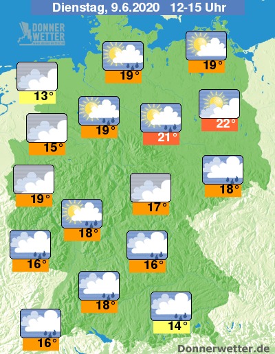 Die Temperaturen bewegen sich zwischen 13 Grad an der Emsmündung und 22 Grad in Berlin.