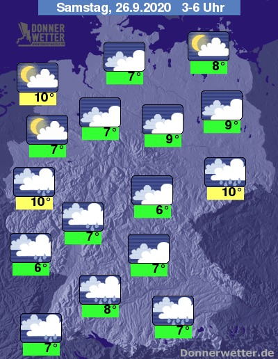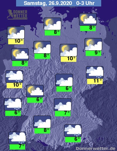 Während der zweiten Nachthälfte bleibt der Himmel in der Mitte und im Süden weitgehend wolkenverhangen und regional kann es nass werden. Im Osten verstärken sich die Regenfälle von Tschechien und später auch von Polen her.