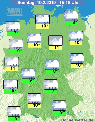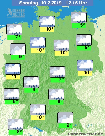 In den Mittags- und Nachmittagsstunden bleibt der Himmel über dem Bundesgebiet stark bewölkt oder bedeckt. Verbreitet fällt dann teils kräftiger Regen, der Wind weht zudem mäßig bis frisch, teils auch stürmisch aus Südwest. Vor allem im Westen und Südwesten sind auch schwere Sturmböen zu erwarten.
