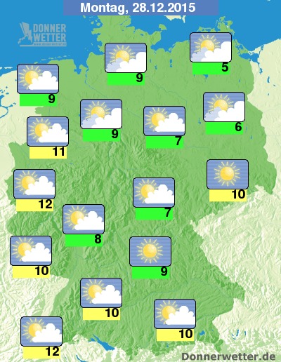 Zum Start in die neue Wetterwoche zeigt sich die Bundesrepublik verbreitet trocken und oft auch freundlich. Etwas zahlreicher bleiben die Wolken in Norddeutschland, dabei ist zwischen den Wolken aber immer wieder auch Sonnenschein möglich, weiter nach Süden hin gibt es oft einen Wechsel aus mal mehr mal weniger Wolken und Sonne. Im Osten und Süden ist der Himmel nicht selten auch wolkenlos. Die Temperatur steigt auf nur noch 5 Grad in Vorpommern und bis milde 12 Grad im Rheinland.