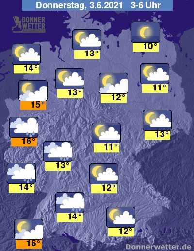 Temperaturen in der Nacht um 16 bis 10 Grad.