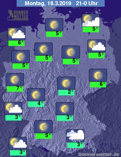 In den Abendstunden zeigt sich der Himmel zunächst noch meist locker oder aufgelockert bewölkt und vor allem im Küstenumfeld sowie am Alpenrand können gebietsweise noch einzelne Schauer fallen. In den übrigen Landesteilen bleibt es meist trocken.