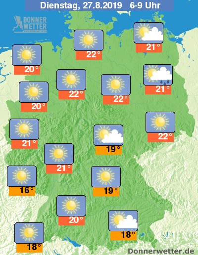 In den frühen Morgenstunden klart der Himmel dann verbreitet auf, lockere Wolken halten sich dann meist nur noch im äußersten Nordosten sowie über den Mittelgebirgen. Schauer sind nicht zu erwarten.