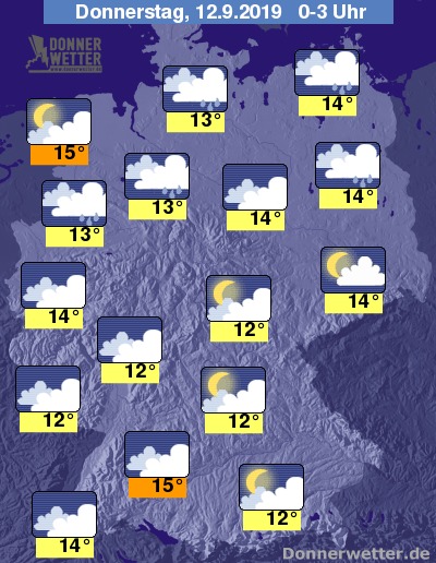 In der Nacht auf Donnerstag zeigt sich der Himmel häufig bedeckt, vorwiegend in der Südhälfte ist es zeitweise auch aufgelockert bewölkt. Im Norden muss vor allem in der ersten Nachthälfte noch mit Schauern gerechnet werden, sonst bleibt es meist trocken.