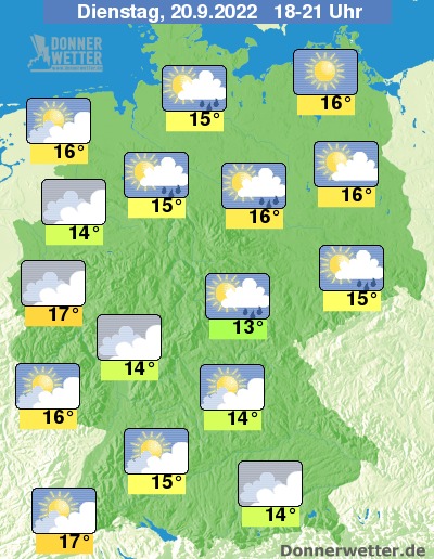Heute Abend zeigen sich zum Teil heitere Abschnitte, teils ziehen dichte Wolken übers Land hinweg, dabei können sich im Osten und Norden einzelne Schauer bilden, während es sonst weitgehend trocken bleibt. Die Temperatur liegt bei 13 Grad in Jena und etwa 17 Grad in Köln.