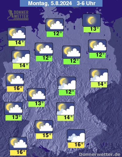 In der Nacht zum Montag lockern die Wolken über weiten Teilen des Landes auf und es sind nur noch selten Schauer möglich. Am ehesten eingangs der Nacht im äußersten Südosten.