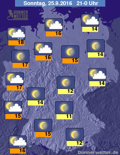 In der ersten Nachthälfte ist es über der Republik teils sternenklar, teils locker bewölkt und es bleibt meist trocken. Einzelne Schauer sind lediglich an der Nordseeküste sowie im Südschwarzwald möglich.