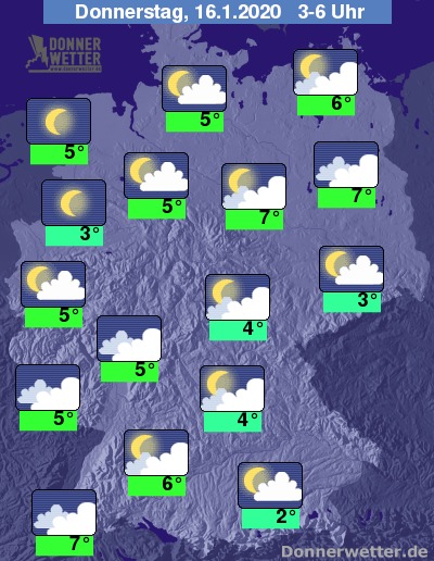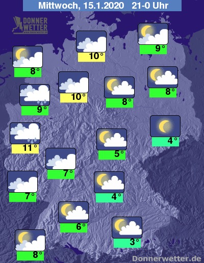 Auch während der zweiten Nachthälfte wechseln sich Wolken mit Mond und Sterne ab. Regen fällt nur noch vereinzelt etwas. Hauptsächlich im Nordwesten klart der Himmel für längere Zeit auf.