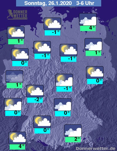 Am Sonntag heitert es in den westlichen Landesteilen immer weiter auf, über der Osthälfte des Landes bleibt es allerdings die längste Zeit des Tages noch stark bewölkt oder trüb, jedoch ebenfalls trocken. Die Temperatur steigt auf 4 Grad an der Oder und bis auf 10 Grad im Oberrheingraben.