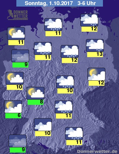 In der kommenden Nacht verlagert sich der Tiefausläufer ostwärts in die Osthälfte Deutschlands und bringt dazu immer wieder, teils kräftigen Regen. In den westlichen Landesteilen lockert die Bewölkung immer weiter auf und dann bleibt es auch trocken. Die Temperatur sinkt auf 13 Grad in Berlin und bis 6 Grad im Saargau.