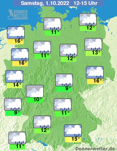 Heute Nachmittag ziehen verbreitet dichte Wolken durch und es fällt immer wieder, zum Teil kräftiger Regen. Die Temperatur liegt bei 9 Grad im Grabfeld und bis 16 Grad an der Ems. Der Wind weht zum Teil, an den Küsten verbreitet stürmisch.