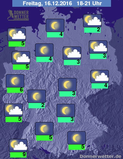 Bis zum Abend reißt dann auch in den restlichen Gebieten die Wolkendecke auf. Vielerorts geht es dementsprechend sternenklar in die Nacht.