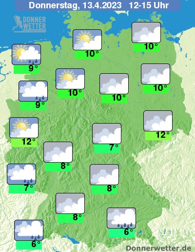 Heute Nachmittag bleibt es zum Großteil dicht bewölkt. Stellenweise, vor allem im Norden ist es hier und da auch aufgelockert bewölkt. Am Alpenrand fällt auch zum Teil langanhaltender Regen, sonst bilden sich nur örtliche Schauer. Die Temperatur liegt bei 6 Grad am Oberrhein und 12 Grad an der Neiße.