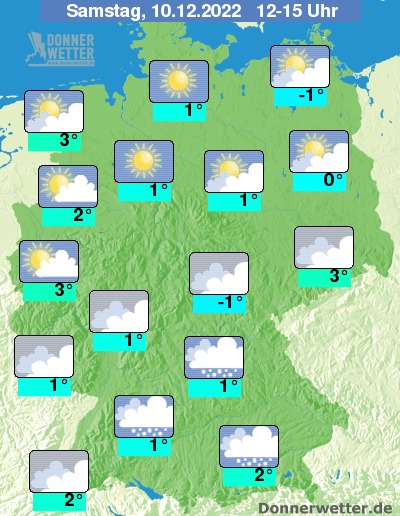 Die Temperaturen erreichen Werte um -1 Grad im Thüringer Becken und 3 Grad an der Nordseeküste.
